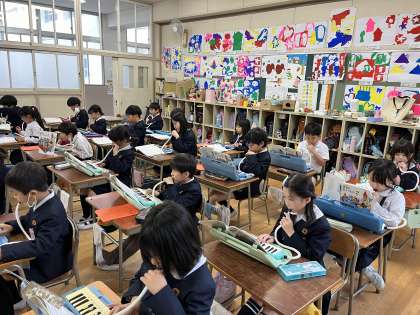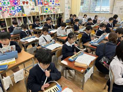 今日の2年生は鍵盤ハーモニカで「アンダルコのうた」の練習していました。チェコスロバキアの民謡でアンダルコとは小さな女の子、との意味らしいです。曲調もとてもかわいらしいものです。でも、練習の様子は真剣そのものでした。