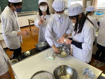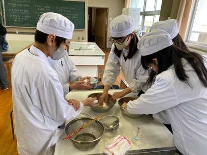 白玉粉に入れる水加減が難しく、なかなか丁度良いやわらかさにならない班もありましたが、最後にはどの班も美味しそうな白玉団子が出来上がっていました。