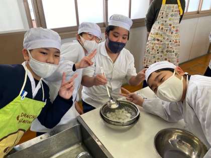 5・6時間目の茶話会に向けて、6年生が、白玉団子を作っていました。