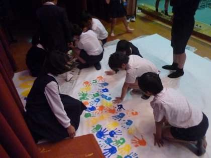 実行委員で考えた,100周年の木を今日は6年生と4年生に依頼をして手形を押しました。