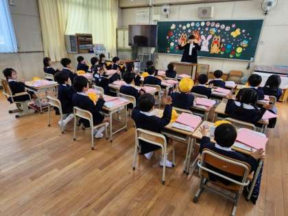 1年生は教室で、さっそく担任の先生のお話をしっかりと聞くことができていました!