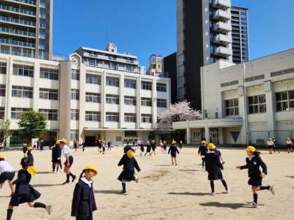 休み時間には、たくさんの子どもたちが運動場に出て遊んでいました!