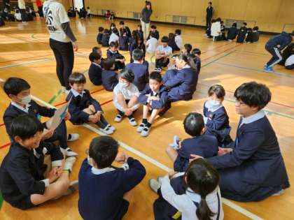 たてわり班に分かれて、みんなでゲームをしたり、お誕生日をお祝いしたりして、違う学年のお友達と仲良くなる機会を作っています。