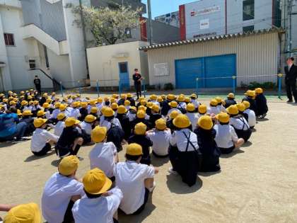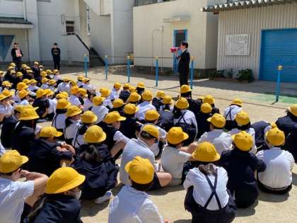 全学年、慌てず静かに避難し、全員が避難するのにかかった時間は2分40秒と、素早く集合することができていました。