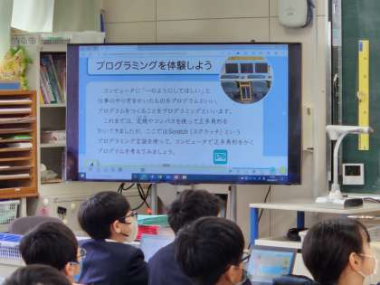 6年生は算数の時間に「プログラミング学習」で、正多角形のかき方を学習しています。