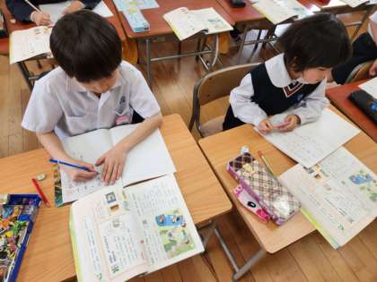 2年生は国語の授業で、1年生で習った漢字を使って「短文」をつくっていました。