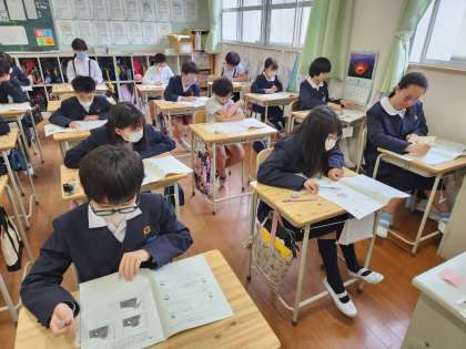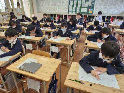 6年生は先日、全国学力学習状況調査を受けているので、今日は「理科」のテストと教科横断型の「わくわく問題」、それに児童アンケートの調査が行われています。