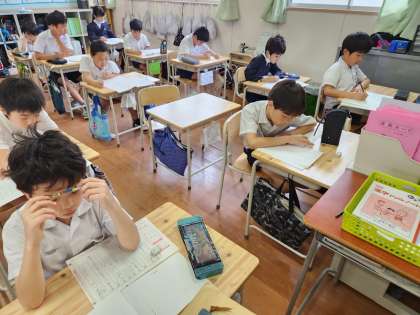 5年生は国語・算数・理科のテストの他に、「わくわく問題」と呼ばれる教科横断型の問題に答え、アンケートも実施されます。