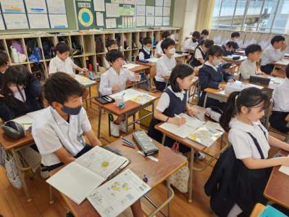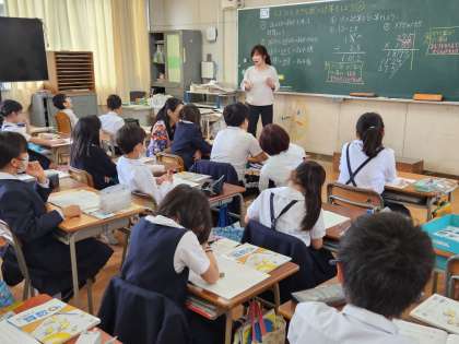 算数の時間に「大きな数の計算」の学習をしている4年生。