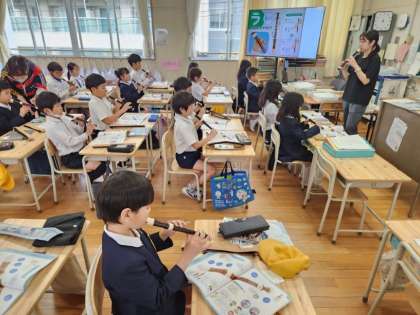 音楽の時間に“リコーダー”の練習が始まった3年生。