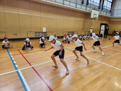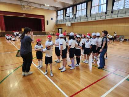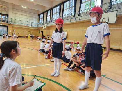 今日は3・4年生が体育館で、反復横跳びや握力などの計測を行いました。