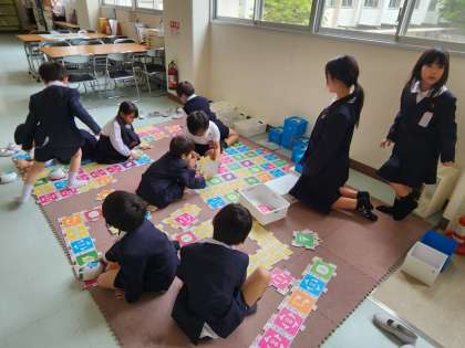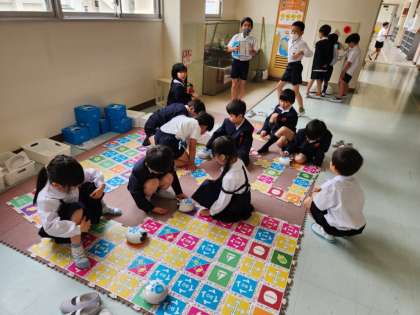 休み時間に運動場へ出ることができませんので、子どもたちは教室や共有スペースで、ゆっくりと過ごしています。