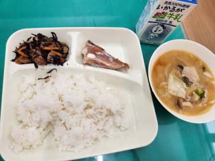 おうちで食べる機会はそんなに多くはないかもしれませんが、今日の献立に出されている「ひじき」は甘辛く調理して提供されており、ごはんによく合うおかずになっています。