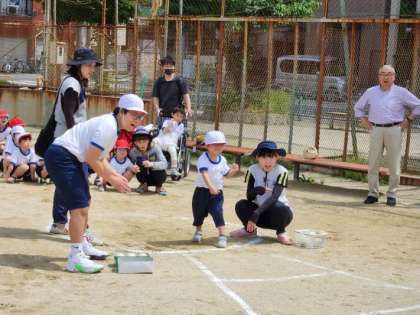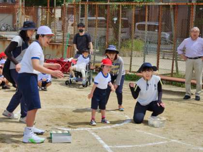 小さな手に大きな“ソフトボール”をつかんで投げるのは、なかなかむずかしい!