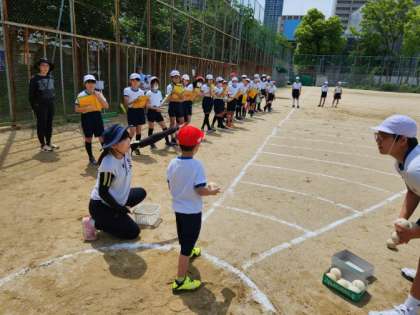 投げ方の“コツ”を先生に教えてもらいながら投げます。