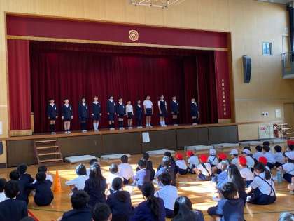 今日の児童集会は、前期運営委員と学級代表の紹介でした。