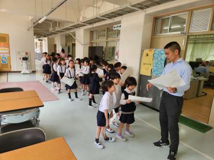 2年生が学校の中を1年生に案内する「がっこうたんけん」。