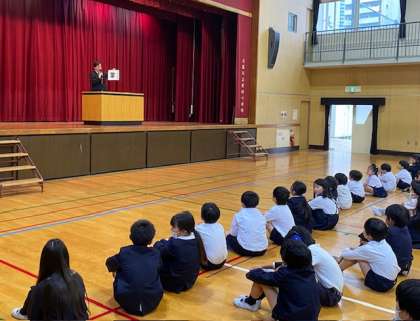 校長先生のお話は、「掌」は何と読むでしょうというクイズから始まりました。たなごころとは、手の平のことですが、手と心には深い結びつきがあるそうです。手を合わせて感謝の気持ちを伝えたり、手をふり合えば嬉しい気持ちになったりします。優しい気持ちを伝えることができる掌ってすごいですね。