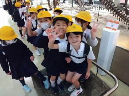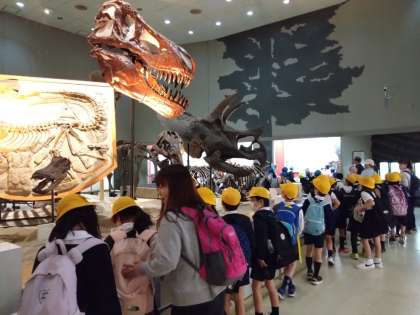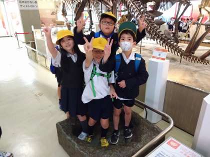 恐竜コーナーでは、ブロントサウルスの足跡と自分たちとの大きさ比べもできました☆