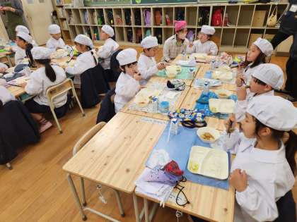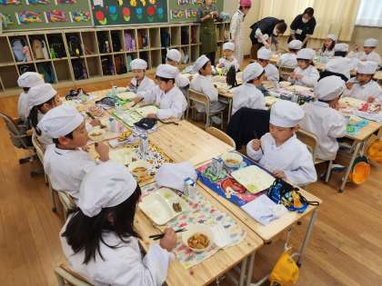 1年生の子どもたちは、小学校での給食スタイルにすっかり慣れてきました。