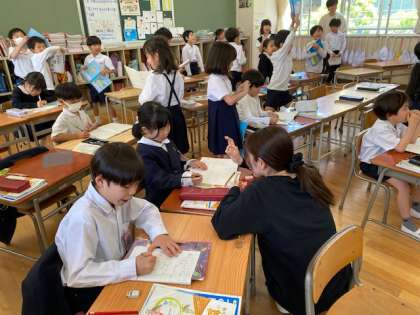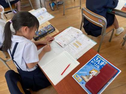 計算が合っているかどうか、友だちとノートを見せあったり、先生にノートを見せて「丸です!」と言ってもらったりしながら答えを確認していました。