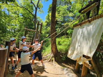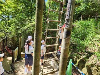 木々の間にあるアスレチックで、とても涼しいです。