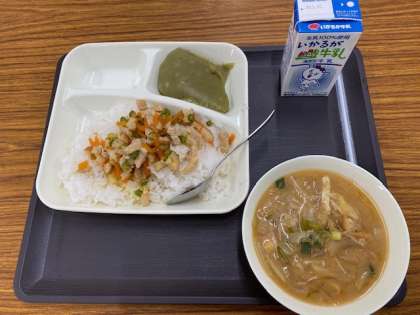 抹茶ういろうは、今年度初めて登場する献立です。よくかみよく味わって食べましょう。