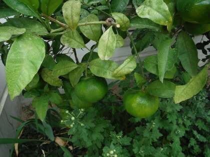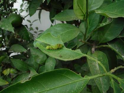 おやっ?アゲハの幼虫もいる。もりもり食べてるね。