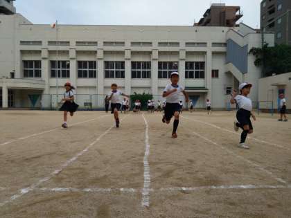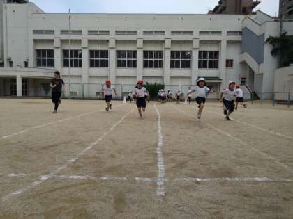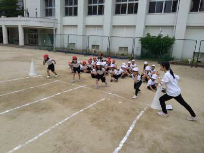 決して広くはない運動場ですが、ショートダッシュで競い合い、瞬発力を高めます☆