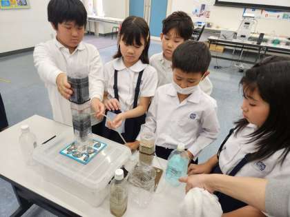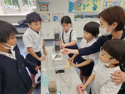 「粒状活性炭」を使って、においや目に見えないような汚れを取り除いていきます。