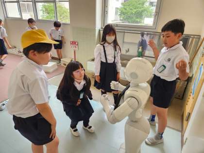 北区の小学校に設置されていた“ペッパーくん”が、このたび更新の時期となり、今週から“新ペッパーくん”が新たに各小学校に置かれています。