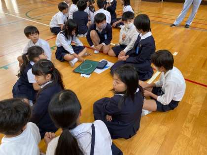 校舎は何階まである?全校児童の人数は?など簡単なものから難しいものまでいろいろなクイズがありました。