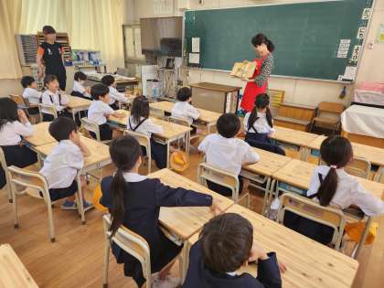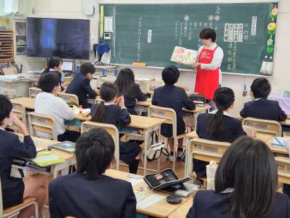 今日の朝の会は、地域の読み聞かせボランティア「えことば」さんにお越しいただき、各学年で絵本の読み聞かせをしていただきました。