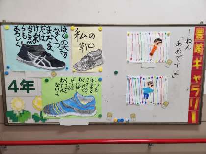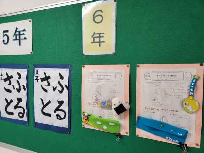 2週間に1回程度のペースで作品の入れ替えを行い、全校児童の作品が展示されます。