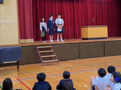 その後「ひとりひとこと」がありました。3人とも、楽しみにしていることや頑張りたいことを、順序立てて発表することができていました。