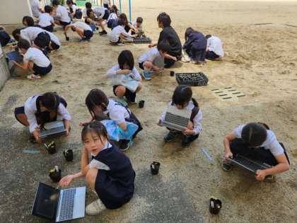 昨日、一昨日は雨のために観察をすることができませんでしたが、今日は記録をとるためにタブレットとものさしを持って、学習園へ観察に行きました。