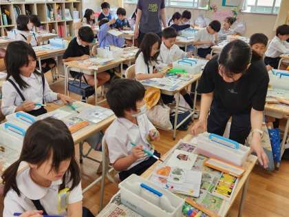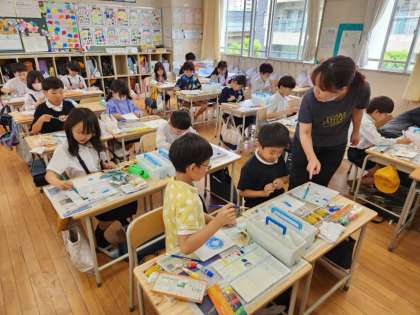 3年生は図画工作の時間に「水彩絵の具」を使った表現技法を学んでいます。