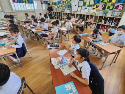 2年生は算数の時間に、たし算・ひき算のひっ算の学習をしています。