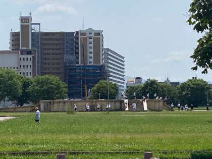 谷町四丁目駅で下車した後、難波宮跡公園で少し休憩してから能楽堂へ向かいました。