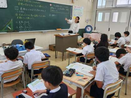 4年生は算数の時間、「垂直・平行と四角形」の学習に入りました。