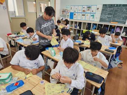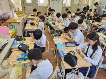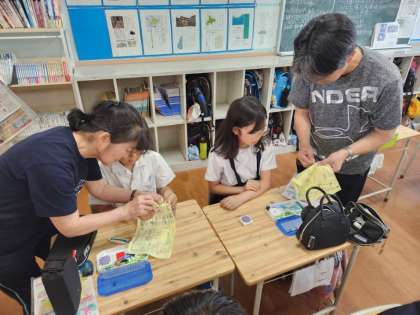 5年生は家庭科の時間、裁縫の学習がすすんでいます。