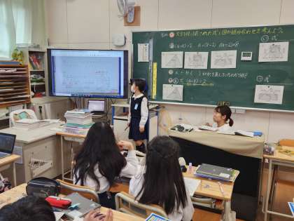 算数の時間に“x”や“y”、“a”や“b”を使った式の立て方、計算の仕方を学んでいる6年生。