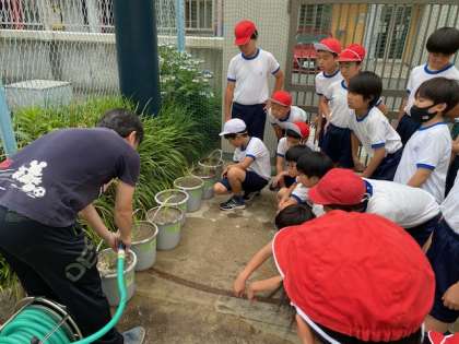 社会科「米作りのさかんな地域」の学習の一環で、5年生はバケツ稲に取り組みます。