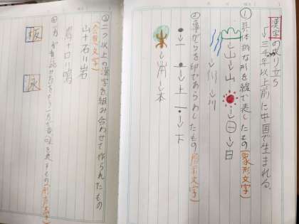 今日は「象形文字」「指示文字」「会意文字」「形声文字」について学習しました。