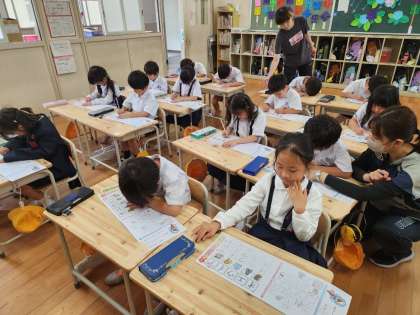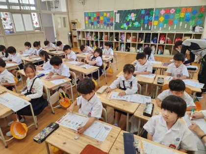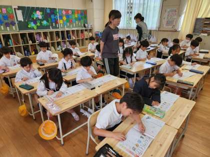 「カタカナ」自体は知っている子も多いですが、字のバランスを考えて正しく書けるよう、「カタカナ」の書き方の基礎を担任の先生から教わります。