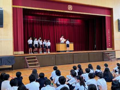 その後ギャラリー表彰がありました。図画工作の作品や書道など、今回も力作ぞろいでした。