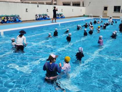 子どもたちはゲストティーチャーの先生方の声に合わせて、自然と水に親しめるようになっていきました。