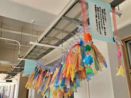 子どもたちが「七夕」の日に合わせて、みんなで“吹き流し”を作ったそうです。