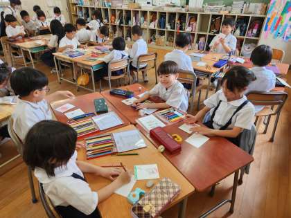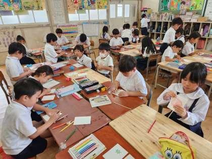子どもたちはその「ミニトマト」をテーマにした図画工作の作品作りをしています。