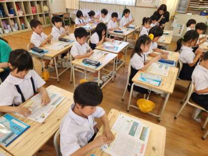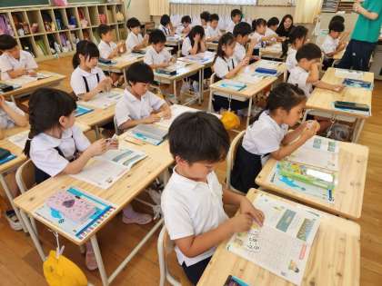 1年生はたしざん・ひきざんの計算が早くできるよう、「けいさんかあど」を使って練習をしています。